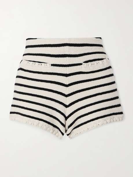 EXCLUSIVE AT NET-A-PORTER. Posse's 'Henry' shorts are knitted with cream-and-black stripes that lean into a vintage mood. They're traced with covered embellishments and look especially chic with the coordinating top and cardigan in our edit.