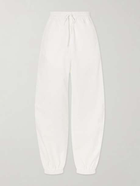 Róhe’s pants reflect the label’s understated approach to relaxed tailoring. Made from a lightly crinkled cotton-blend, they have a drawstring waist and voluminous legs that taper at the cuffs, enhancing the airy feel.