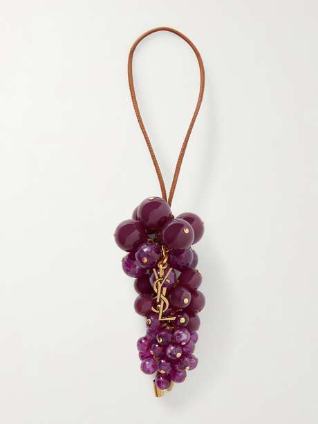 SAINT LAURENT Grapes gold-tone, resin and leather bag charm