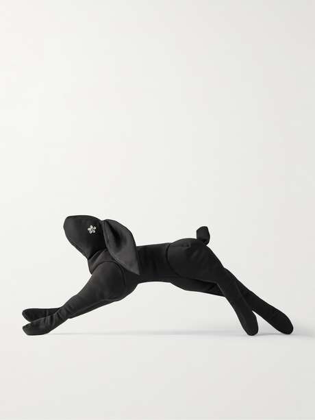 The Tortoise and the Hare inspires Simone Rocha's Fall '25 collection, but with a dark, alternative twist. Worn on the runway, this bag is made from padded satin with a crystal 'eye' and long, draping legs. It can be worn as a clutch or on the shoulder and will fit a compact, phone and lip gloss.