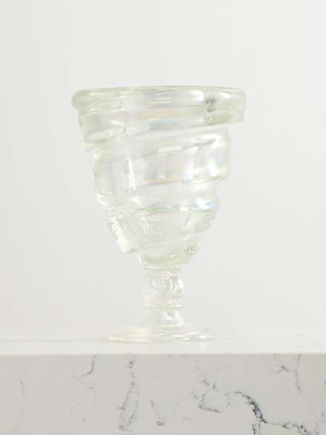 Sophie Bille Brahe's 'Cellophane' vase has been crafted in Murano, Italy, using traditional mouth-blowing techniques to create a gorgeous swirling shape. It's made from iridescent glass that resembles the glow of an opal.