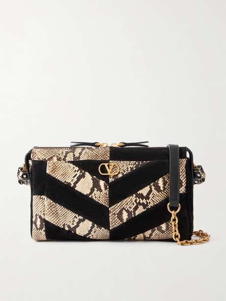 VALENTINO GARAVANI Panthea patchwork snake-effect leather and suede shoulder bag