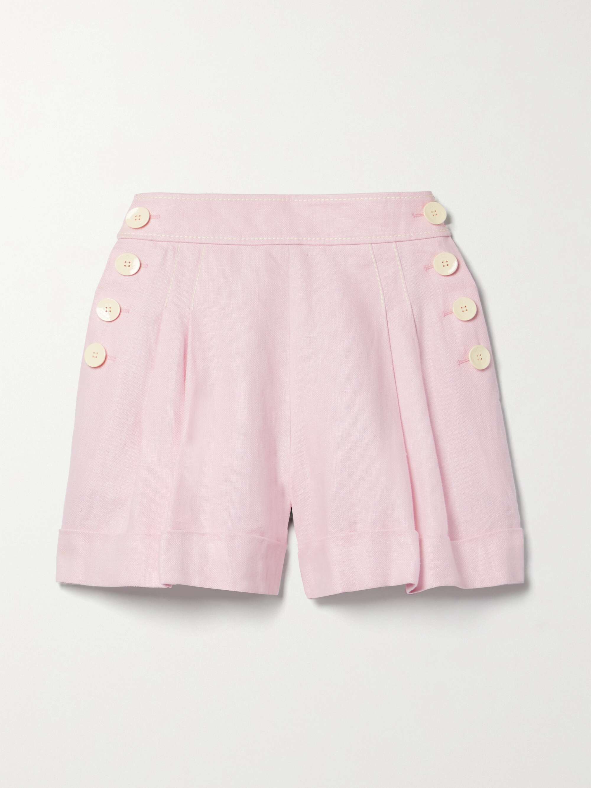 • ZIMMERMANN High Tide button-embellished pleated linen shorts