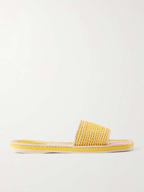 The woven cord used for Chloé's slides screams summer. The wide strap is wrapped in a striped formation and finished with tonal logo embroidery for a subtle signature touch. The sturdy soles provide grip on slippery surfaces - think poolside or airports.