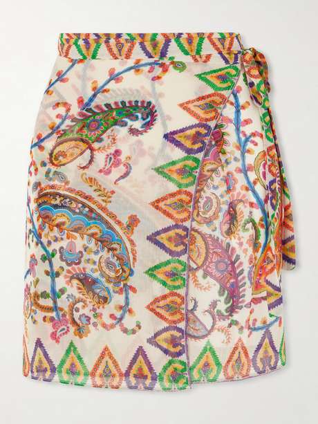This voile coverup by Etro treats print as movement rather than decoration. Paisley motifs drift across the sheer surface like fragments in motion, while the wrap construction shifts with the body, revealing and concealing in a continuous gesture.