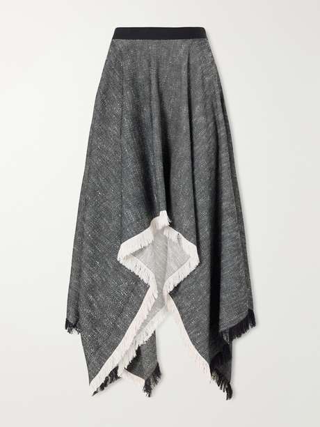 KALLMEYER Frayed asymmetric tweed midi skirt