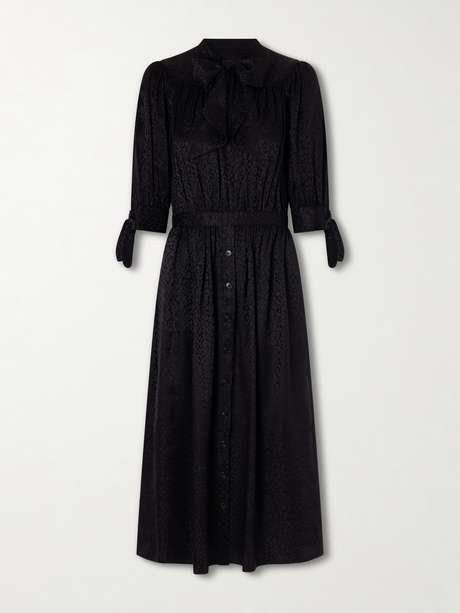 Maison Mayle's 'Lala' dress solves those "nothing to wear" moments with ease. Made from silk crepe, it rendered in leopard jacquard and finished with a pussy-bow at the high neck. Style it with a blazer and pointed pumps.
