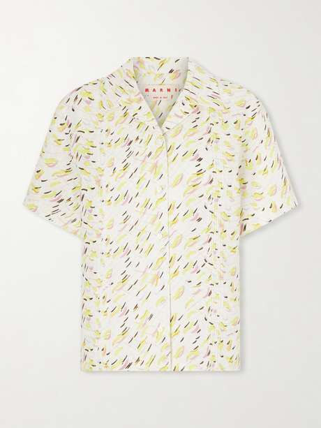 Printed with Marni’s abstract ‘Brushstroke Wave’ motif, this shirt captures the label’s playful approach to pattern. Made from linen, it’s detailed with pintucks through the front and finished with a classic collar.
