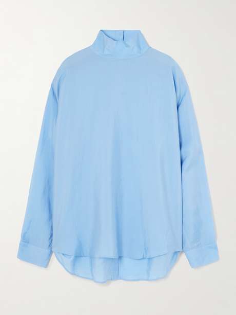 Tibi's blouse feels so elegant with its fluid drape and pretty blue palette. Made from a blend of fluid Lyocell and silk, it has dropped shoulders, a relaxed fit and a statement turtleneck. Pair yours with jeans or tailoring.