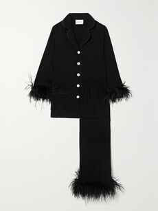 SLEEPER+ NET SUSTAIN feather-trimmed crepe de chine pajama set