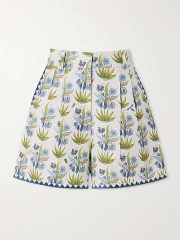 Beatrice Celestine pleated floral-print linen and cotton-blend shorts