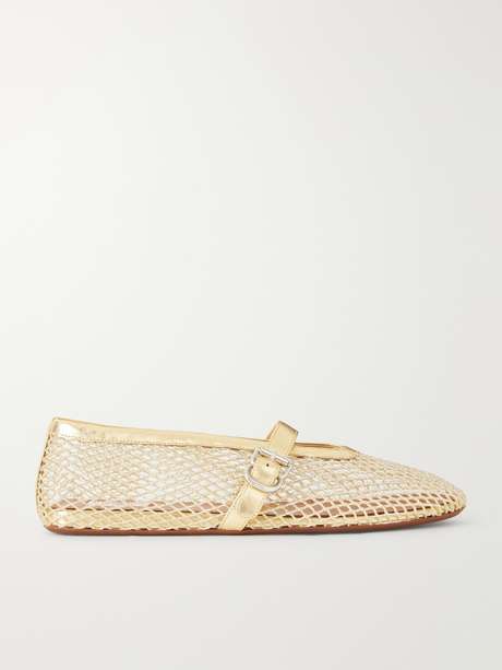 Alaïa gives the humble ballet flats a modern update. This pair has been crafted in Italy from gold mesh with classic round toes and glossy metallic-leather straps.