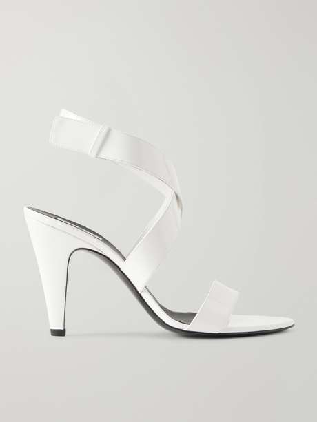 Restraint and expression converge through refined craft in Alaïa’s Spring ’26 collection. Made in Italy from glossy patent leather, these sandals feature elegant almond toes and crossed straps that fasten at the ankles. Style them with an evening dress.