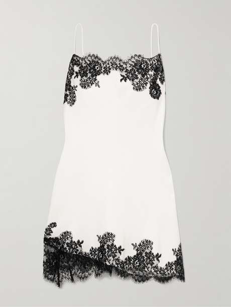 From parties to date night, Alex Perry's dress will see you through any invitation. It's bias-cut from satin-crepe, adorned with romantic French lace and strung with spaghetti straps. The asymmetric mini hem adds a sultry spin.