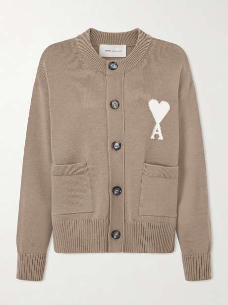 AMI PARIS Intarsia-knit wool and cotton-blend cardigan