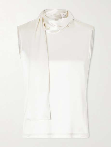 Bottega Veneta's top is trimmed with scarf-like ties at the neck – a motif carried straight from the Spring '26 runway. It's made from stretch-silk satin, which feels beautifully fluid.