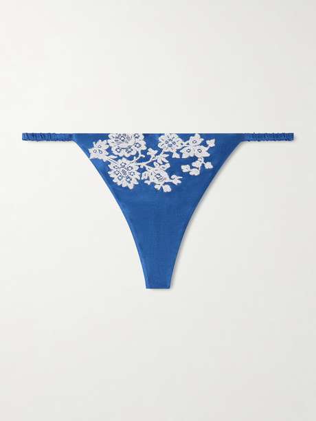 It's the meticulous attention to detail and exquisite fabrics that set Carine Gilson's lingerie apart. This thong has been handmade in the label's atelier from smooth silk-satin and is trimmed with beautiful floral lace. Complete the set with the matching bra.