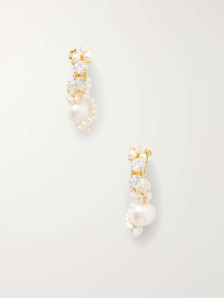 COMPLETEDWORKS Gold-plated cubic zirconia and peal hoop earrings