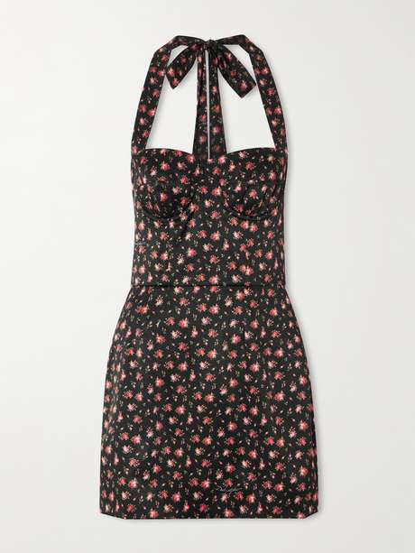 Dolce&Gabbana's dress has been made in Italy from smooth silk-blend satin and scattered with dainty roses. Defined by halterneck straps, it has a corset-inspired bodice with defined cups. Spritz on a floral scent to bring the print to life.