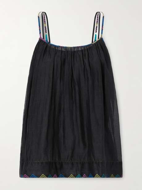 The hand-blocked print on Eka’s 'Gladioli' top adds a playful touch. Made in India from soft cotton and silk-blend voile, it’s set on double spaghetti straps. Style it with floaty summer pants.