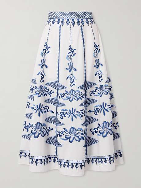 EMPORIO SIRENUSE Camille embroidered cotton-blend midi skirt