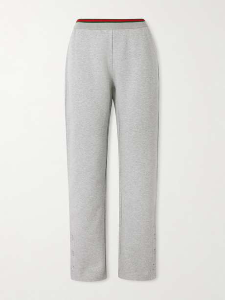 Gucci redefines casual sophistication with these track pants. Cut from soft cotton-blend jersey, they have buttons along the lower seams and the iconic stripes detailing the elasticated waist. Pair yours with a relaxed knit or tee for an understated yet polished off-duty look.