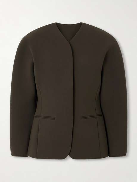 Jacquemus' collarless jacket is part of the directional 'Ovalo' collection. Tailored from grain de poudre, it has structured, cocooning shoulders and an hourglass waist. Style yours with the coordinating pants and heeled sandals.