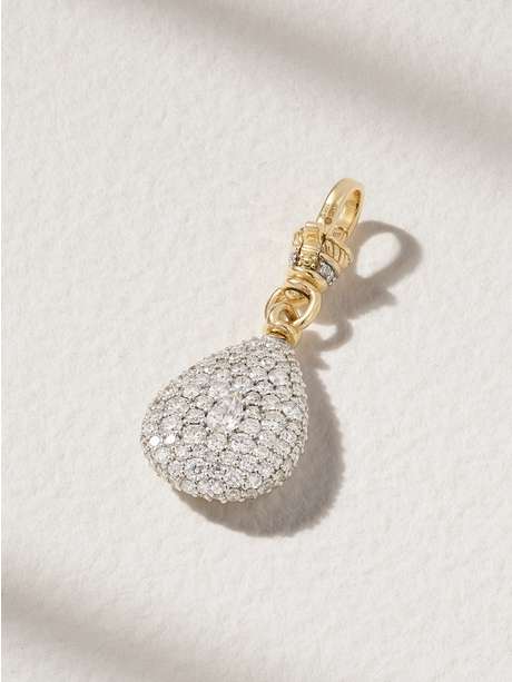 Lucy Delius' 'Pear Pocket Watch' charm comes with an 'Albert' clip so you can easily attach it to your bag or favourite chain necklace. Cast from rhodium-plated 14-karat gold, this pear-shaped pendant has been designed in London and set with sparkling diamonds.