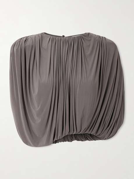 Magda Butrym's blouse has a sense of movement – the asymmetric drapes give it the effect. It's made from stretchy jersey in a cropped silhouette.