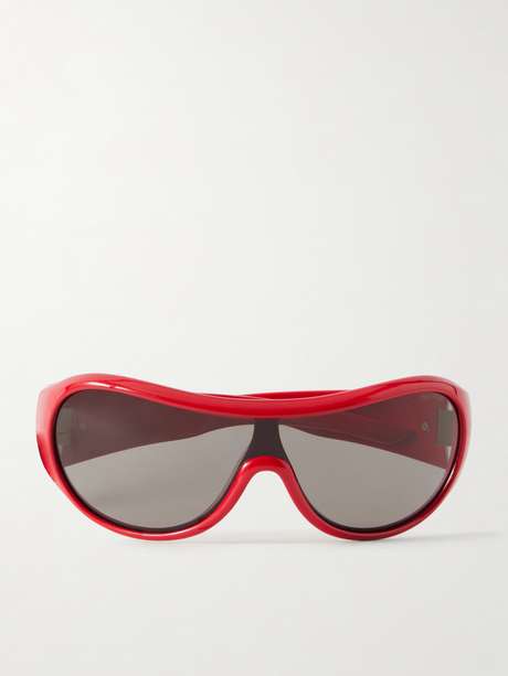 Miu Miu's sunglasses channel an après-ski mood with their bold, sporty shape. Made from glossy acetate, they have thick square frames reminiscent of ski visors.