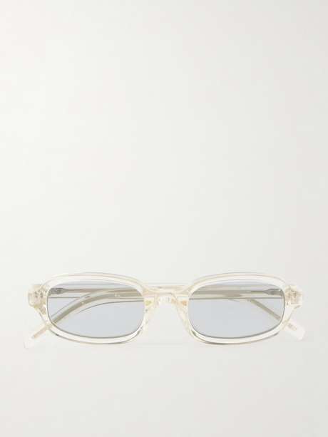 Incorporating a pair of clear glasses into your look will make your everyday outfits look carefully curated. Prada's rectangular-frame sunglasses have been made in Italy from a lightweight transparent acetate. The shape is softly rounded.
