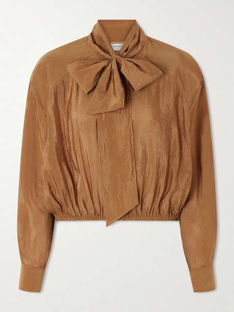 SAINT LAURENT Pussy-bow crinkled taffeta shirt