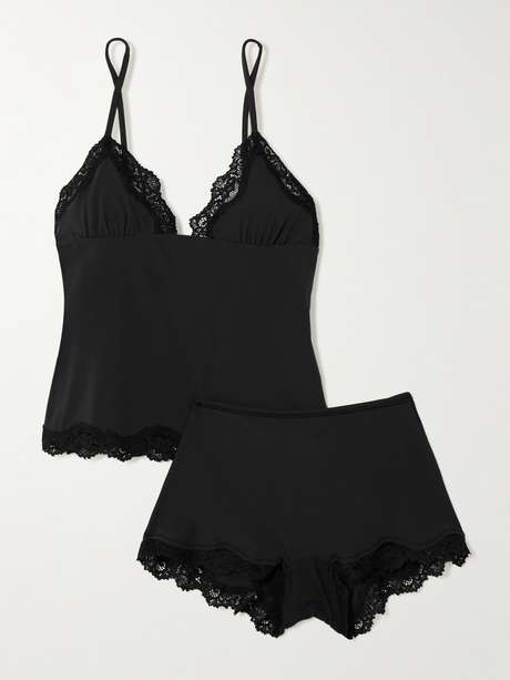 SKIMS Fits Everybody Lace Triangle Cami and Boy Short Set - Onyx