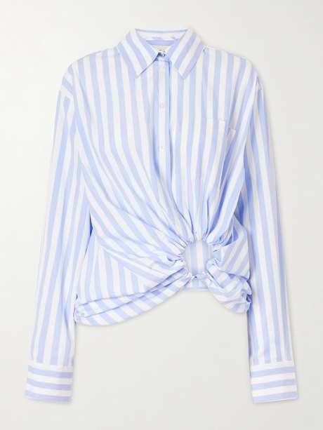 SPORTMAX Gathered striped cotton-poplin shirt