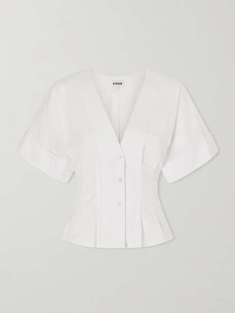 STAUD Elle pleated cotton-blend poplin blouse