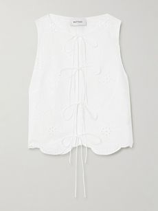 When luggage allowance is limited, a matching set is the perfect way to save on space – and will make getting dressed for dinner or sojourns into town a breeze. Faithfull’s ‘Cora’ set is cut from languid satin in a relaxed, pajama style shape and can easily be thrown on over a bikini or dressed up with heels. Elsewhere, Matteau’s top and skirt come in crisp broderie anglaise cotton and look so chic paired with a basket bag and stacked bangles.