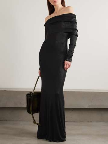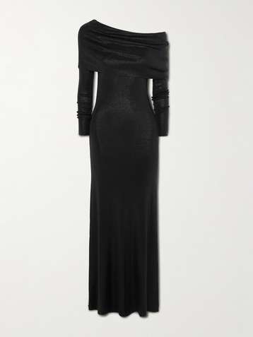 Draped metallic stretch-knit maxi dress