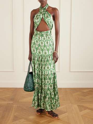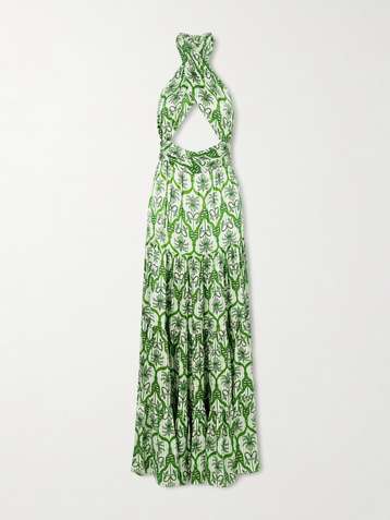 Nina cutout printed silk-blend satin maxi dress