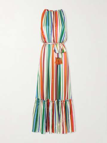 Angelica belted striped stretch-silk satin maxi dress