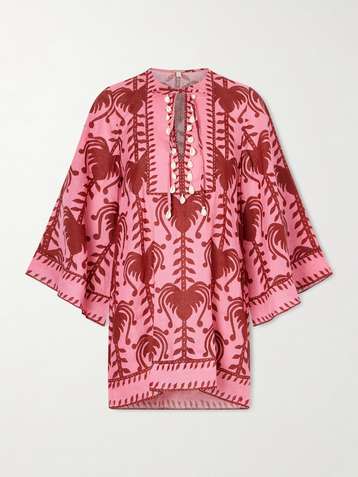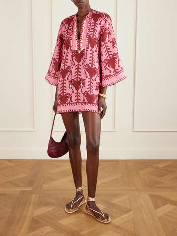 + NET SUSTAIN Ocean Clan embroidered organic linen-blend mini dress