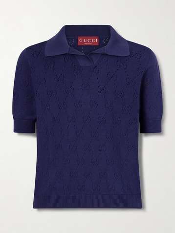 Cristine pointelle-knit cotton and cashmere-blend polo shirt
