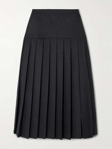 Pleated wool-flannel midi skirt