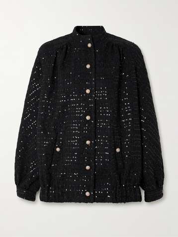 Hailey wool-blend bouclé-tweed bomber jacket