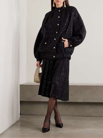 Nuevo Destino embellished recycled stretch-Lurex midi skirt