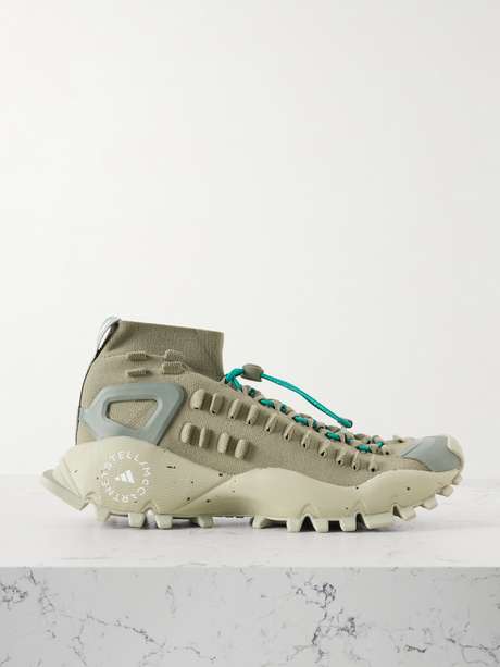 adidas by Stella McCartney's 'Seeulater' sneakers are both striking and functional. They're made from stretchy, water-resistant 'Primeblue' fabric and set on cleated soles. Bungee laces make them easy to take on and off.