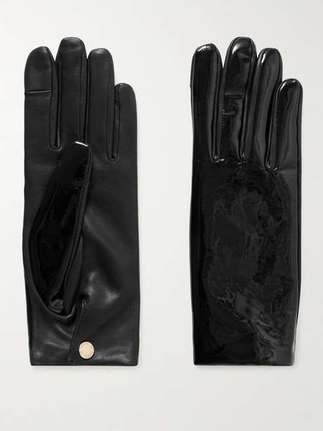 Agnelle's 'Funky' gloves are crafted from a combination of matte and patent-leather, chosen for their "finesse and silky feel." They fasten with logo-etched snaps and are fully lined in silk.