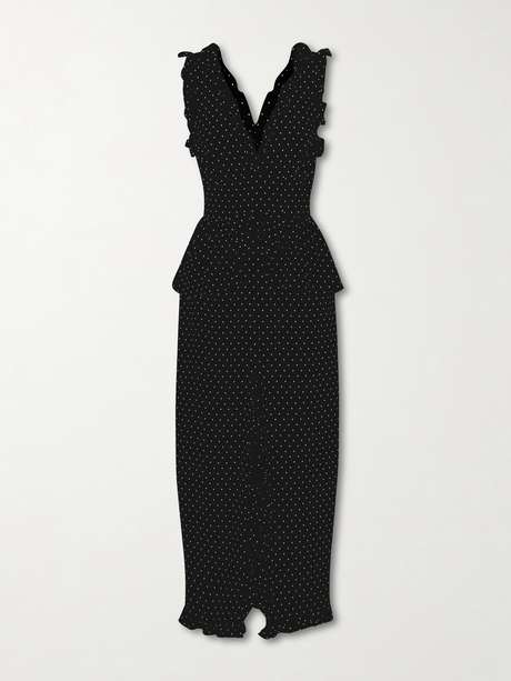 EXCLUSIVE AT NET-A-PORTER. Exude evening glamour in Alessandra Rich's polka-dot dress. Its deep v-neckline, scalloped trim and ornate bow details are flawlessly cut from glossy black silk.