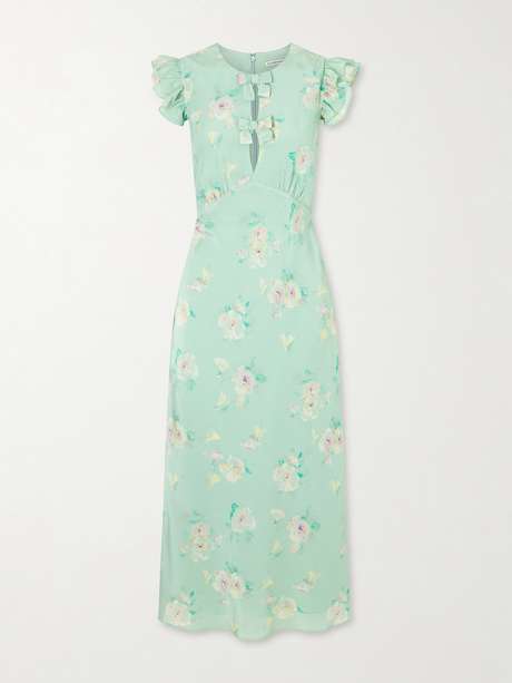 ALESSANDRA RICH Floral-print ruffle-trim silk midi dress