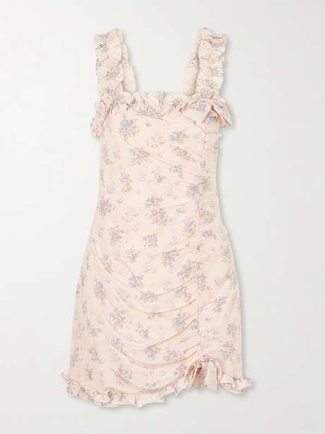 EXCLUSIVE AT NET-A-PORTER. Alessandra Rich's dress is shaped with gentle ruching that adds dimension to the slim fit. Made in Italy from silk, it is printed with delicate blooms throughout and finished with ruffles along the neckline and hem.
