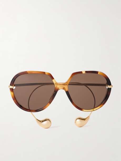 Bottega Veneta Eyewear's 'Drop' sunglasses have curved gold-tone arms, which pierce the lenses and wrap around the ear, ending in sculptural teardrops. They've been crafted in Italy from tortoiseshell acetate and have oversized round frames with a distinctly '70s feel. Keep yours protected in the accompanying case.